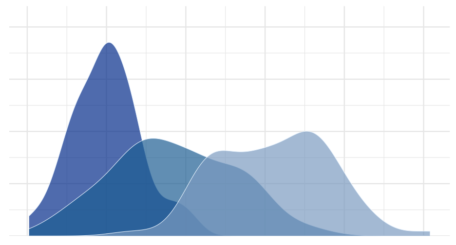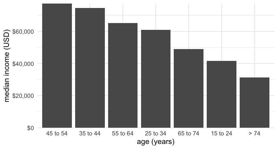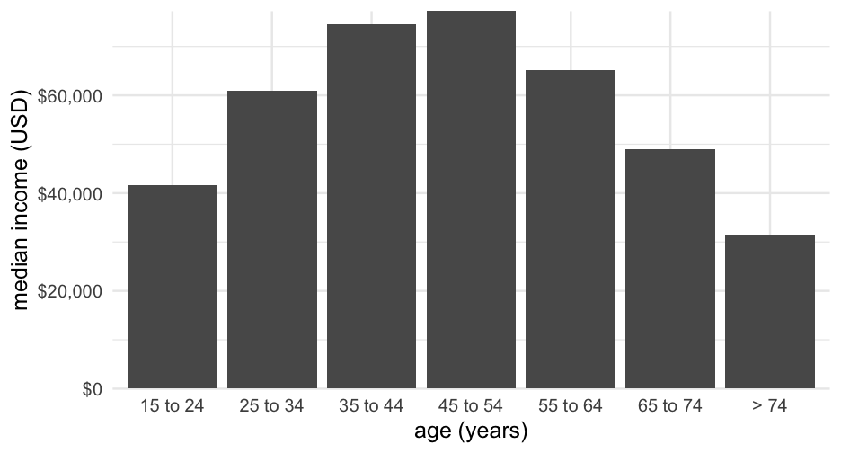 class: center, middle, inverse, title-slide .title[ # Welcome! ] .subtitle[ ## Intro to visualizations, simple visualizations for continuous variables and string data, and downloading data from API, ] .author[ ### Maithreyi Gopalan ] .date[ ### Week 2 ] --- layout: true <script> feather.replace() </script> <div class="slides-footer"> <span> <a class = "footer-icon-link" href = "https://github.com/maithgopalan/c2-dataviz-2026/raw/main/static/slides/w2.pdf"> <i class = "footer-icon" data-feather="download"></i> </a> <a class = "footer-icon-link" href = "https://dataviz-win2026.netlify.app/slides/w2.html"> <i class = "footer-icon" data-feather="link"></i> </a> <a class = "footer-icon-link" href = "https://github.com/maithgopalan/c2-dataviz-2026"> <i class = "footer-icon" data-feather="github"></i> </a> </span> </div> --- # Agenda .pull-left[ * Visualizing distributions + histograms + density plots + Empirical cumulative density plots + QQ plots * Visualizing amounts + bar plots + dot plots + heatmaps ] .pull-right[ * Working textual data + Splitting into words, n-grams + Visualizing word frequencies * Cleaning string data + Substrings, basic transformations + Substitutions and quick pattern matching * Using API keys to download data + Understand packages/wrappers in R to download data ] -- You will have **at least 1 hour of lab that directly follows (or are minor extensions of) the codes you see in lecture today** ! --- # Learning Objectives * Understand various ways the same underlying data can be displayed * Think through pros/cons of each * Understand the basic structure of the code to produce the various plots * Create structured data from text and be able to visualize word frequencies * Be able to replace patterns in strings and understand which character need to be "escaped" * Using API keys, downloading data using R packages --- class: inverse-red center middle # One continuous variable --- # Histogram  --- # Density plot  --- # (Empirical) Cumulative Density  --- # QQ Plot Compare to theoretical quantiles (for normality)  --- # Empirical examples I am going to go slow on this example section, so if you want to follow along, that will be a good idea; and can help you in the lab later today! --- background-image:url(https://allisonhorst.github.io/palmerpenguins/reference/figures/lter_penguins.png) background-size: contain # Penguin data --- ``` r library(palmerpenguins) penguins ``` ``` ## # A tibble: 344 × 8 ## species island bill_length_mm bill_depth_mm flipper_length_mm body_mass_g sex year ## <fct> <fct> <dbl> <dbl> <int> <int> <fct> <int> ## 1 Adelie Torgersen 39.1 18.7 181 3750 male 2007 ## 2 Adelie Torgersen 39.5 17.4 186 3800 female 2007 ## 3 Adelie Torgersen 40.3 18 195 3250 female 2007 ## 4 Adelie Torgersen NA NA NA NA <NA> 2007 ## 5 Adelie Torgersen 36.7 19.3 193 3450 female 2007 ## 6 Adelie Torgersen 39.3 20.6 190 3650 male 2007 ## 7 Adelie Torgersen 38.9 17.8 181 3625 female 2007 ## 8 Adelie Torgersen 39.2 19.6 195 4675 male 2007 ## 9 Adelie Torgersen 34.1 18.1 193 3475 <NA> 2007 ## 10 Adelie Torgersen 42 20.2 190 4250 <NA> 2007 ## # ℹ 334 more rows ``` --- # Basic histogram ``` r ggplot(penguins, aes(x = bill_length_mm)) + geom_histogram() ``` ``` ## `stat_bin()` using `bins = 30`. Pick better value with `binwidth`. ``` <img src="w2_files/figure-html/age_hist-1.png" width="70%" style="display: block; margin: auto;" /> --- # Make it a little prettier ``` r ggplot(penguins, aes(x = bill_length_mm)) + geom_histogram(fill = "#56B4E9", color = "white", alpha = 0.9) ``` ``` ## `stat_bin()` using `bins = 30`. Pick better value with `binwidth`. ``` <img src="w2_files/figure-html/age_hist2-1.png" width="70%" style="display: block; margin: auto;" /> --- # Change the number of bins ``` r ggplot(penguins, aes(x = bill_length_mm)) + geom_histogram(fill = "#56B4E9", color = "white", alpha = 0.9, * bins = 50) ``` <img src="w2_files/figure-html/age_hist50-1.png" width="70%" style="display: block; margin: auto;" /> --- # Vary the number of bins <img src="w2_files/figure-html/bins-1.png" width="70%" style="display: block; margin: auto;" /> --- # Denisty plot ### ugly 😫 ``` r ggplot(penguins, aes(bill_length_mm)) + geom_density() ``` <img src="w2_files/figure-html/dens-titanic-1.png" width="70%" style="display: block; margin: auto;" /> --- # Denisty plot ### Change the fill 😌 ``` r ggplot(penguins, aes(bill_length_mm)) + geom_density(fill = "#56B4E9") ``` <img src="w2_files/figure-html/dens-titanic-blue-1.png" width="70%" style="display: block; margin: auto;" /> --- # Density plot estimation * Kernal density estimation + Different kernal shapes can be selected + Bandwidth matters most + Smaller bands = bend more to the data * Approximation of the underlying continuous probability function + Integrates to 1.0 (y-axis is somewhat difficult to interpret) --- # Denisty plot ### change the bandwidth ``` r ggplot(penguins, aes(bill_length_mm)) + geom_density(fill = "#56B4E9", bw = 5) ``` <img src="w2_files/figure-html/dens-titanic5-1.png" width="70%" style="display: block; margin: auto;" /> --- class: middle <img src="w2_files/figure-html/vary-bw-1.png" width="70%" style="display: block; margin: auto;" /> --- # Quickly How well does it approximate a normal distribution? ``` r ggplot(penguins, aes(sample = bill_length_mm)) + stat_qq_line(color = "#56B4E9") + geom_qq(color = "gray40") ``` <img src="w2_files/figure-html/qq-titanic-1.png" width="70%" style="display: block; margin: auto;" /> --- class: inverse-red center middle # Grouped data ### Distributions How do we display more than one distribution at a time? --- # Boxplots  --- # Violin plots  --- # Jittered points  --- # Sina plots  --- # Stacked histograms  --- # Overlapping densities  --- # Ridgeline densities  --- class: inverse-orange center middle # Quick empirical examples --- # Boxplots ``` r ggplot(penguins, aes(island, bill_length_mm)) + geom_boxplot(fill = "#A9E5C5") ``` <img src="w2_files/figure-html/boxplots-empirical-1.p