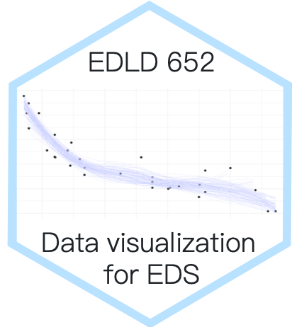 Please see the assignments page for full details on the final project, which will include a portfolio of your data visualizations using the course data. At least four different data visualizations must be included, as well as the history of how the visualization changed over time (initial draft to final product). The portfolios must be housed on GitHub and be reproducible. It can be helpful to make final modifications to your plot through systems outside of R (e.g., Adobe Illustrator, Inkscape). If you choose to make these modifications (not required) they are the one (and only) acceptable exception to full reproducibility.